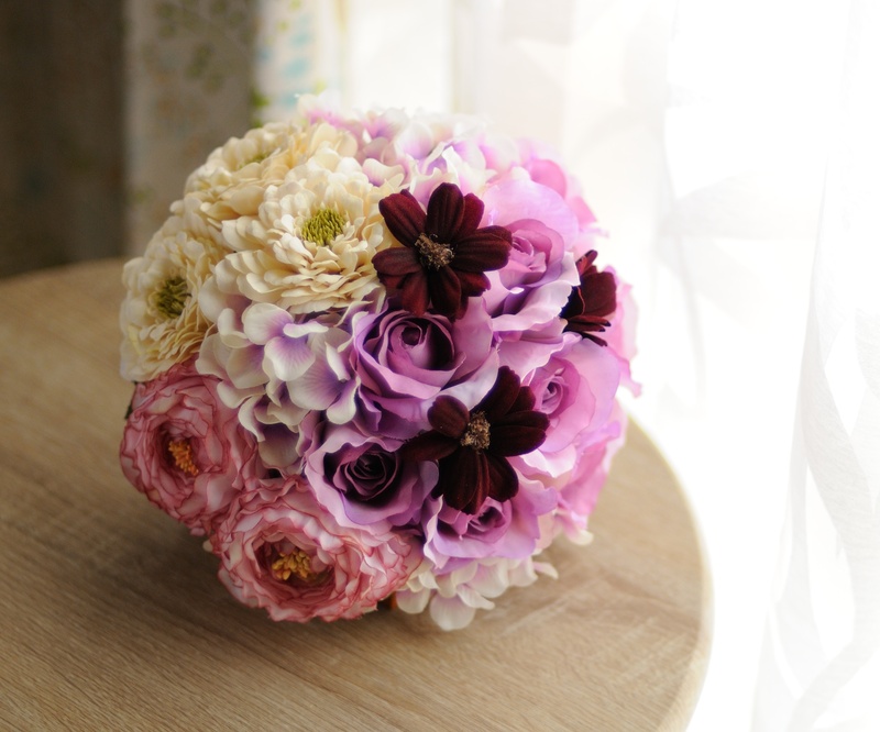 【シルク】大人かわいいラウンドブーケ(ブトニア込)