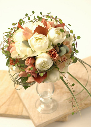 コロンとした形のお花が印象的です。グリーンを添えて軽やかに。