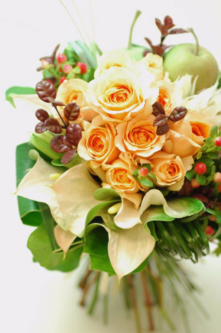 あたたかみのある質感のお花や、実もので秋らしくアレンジ。
