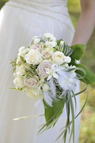 フワフワのファーを入れたブーケ。ほんのりピンクを入れて温かみをプラス。ホワイトクリスマスにもおすすsめ