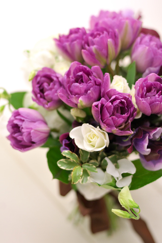 春代表のお花チューリップ。紫色でまとめるとちょっぴり大人の表情にも!!春に式するならブーケに入れたいお花ですね。