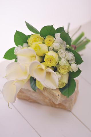 春色カラーでまとめたブーケ。黄色をいれて爽やかに!