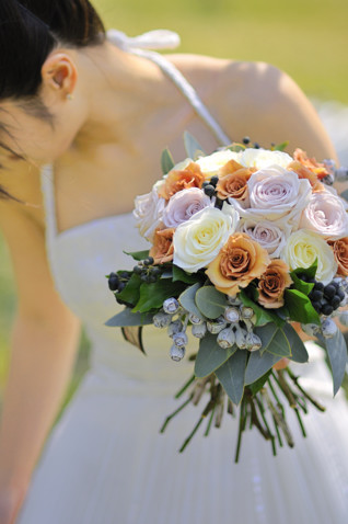 アンティークからで大人っぽく。ブーケのスタイルをクラッチにして、やわらかい印象にしています。