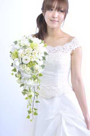 白とグリーンで爽やかな雰囲気のキャスケードブーケ!