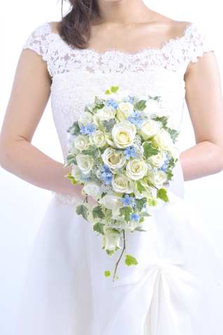 バラ 白+水色 ;チョイス ラウンドブーケ[1]