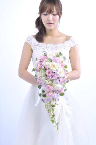 b-4 白とピンクのキャスケードブーケ