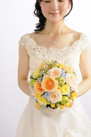 青リンゴがとってもキュート。ガーデンウェディングにピッタリ☆黄色やオレンジドレスにいかが??ゲストもきっと驚きますね。