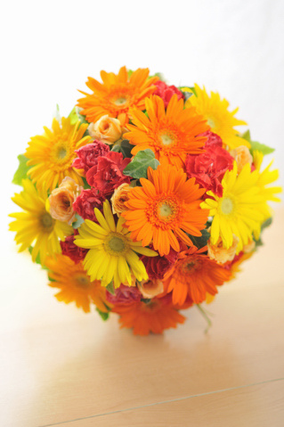 おまかせブーケの選べる色;白・ピンク・ピンク濃淡・濃いピンク・黄色・オレンジ・赤・ビタミン(黄色オレンジ 赤挿し色)