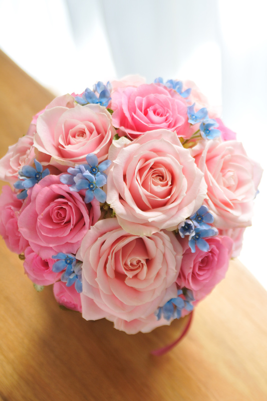 バラ ピンク+水色小花;チョイス ラウンドブーケ[1]