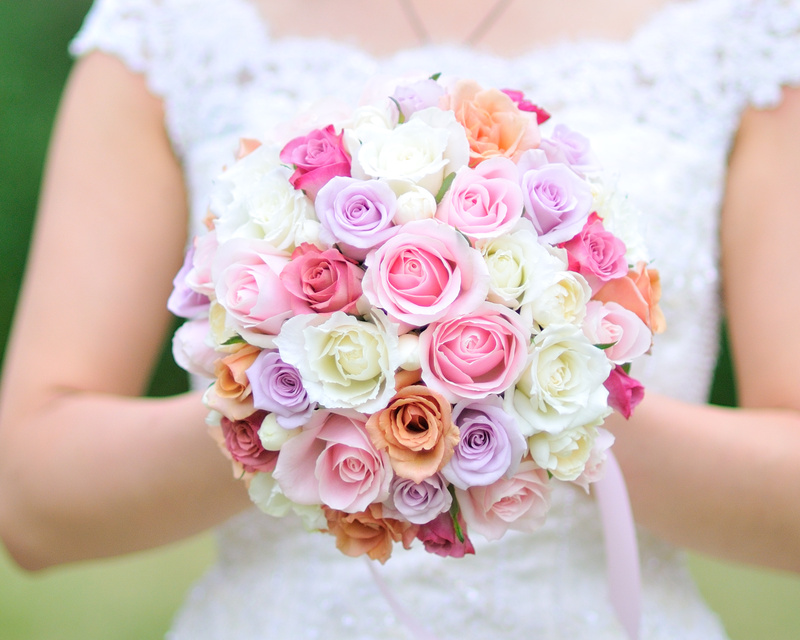 バラの甘い香りが漂うラウンドブーケ クラシカルに上品に花嫁を導きます。