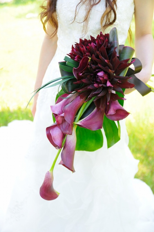 ダリア黒蝶とカラーのクールクラッチブーケ