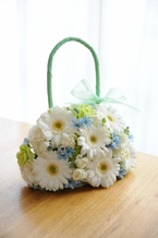 白いガーベラと小花たちが、キュートなバックに!