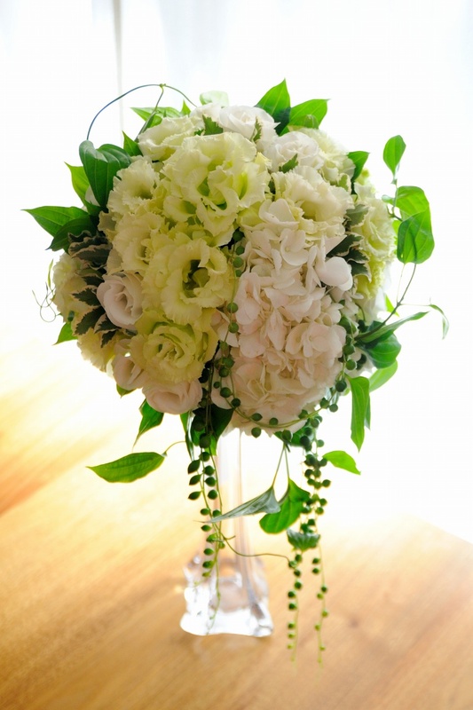 トルコキキョウ・アジサイ・リキュウソウ・グリーンネックレス