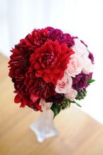 華やかなダリアとバラのブーケ