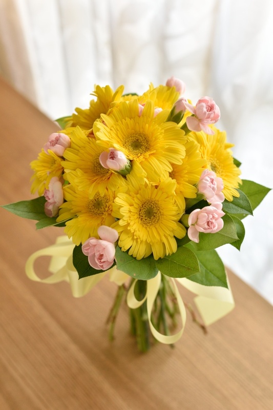 お花おまかせクラッチブーケ(黄色+ピンク)