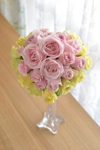 ハートのブーケをピンクとイエローのバラで可愛く仕上げました!披露宴で女の子をワッと言わせちゃいましょう。