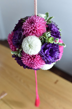 和装で人気のピンポンマムとダリアを合わせたボールブーケです。
