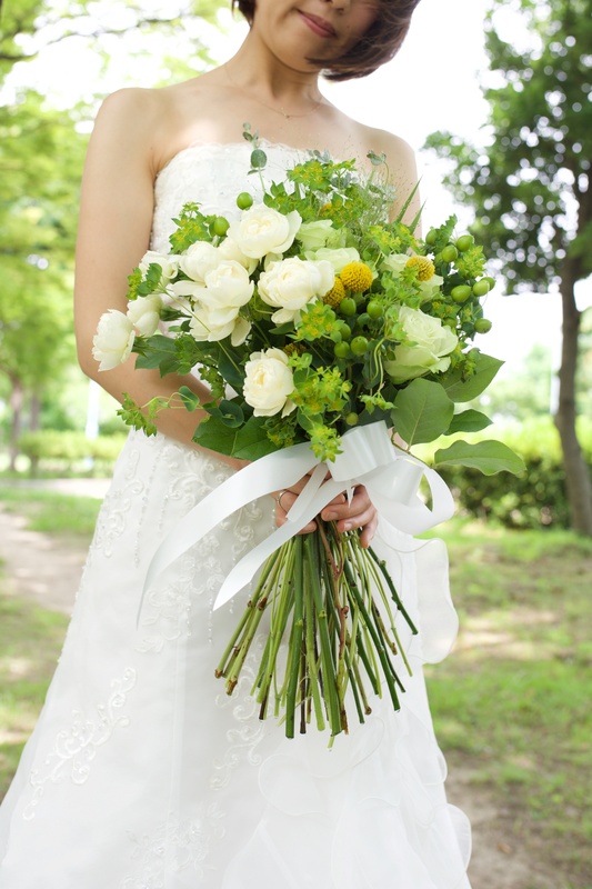 グリーンのお花をふんだんに使ったクラッチブーケ