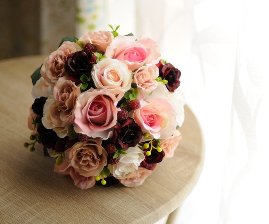 きれいな茶色のグラデーション。シルクフラワーなら安心。落ち着いた印象に。