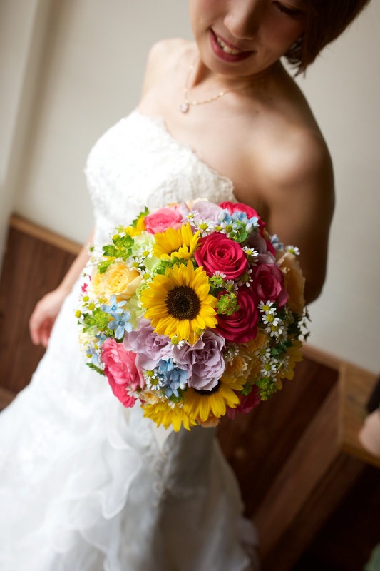ひまわりメインのお花たっぷり、夏の挙式におすすめです♪