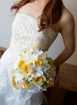 プルメリアとバラをメインにかわいく大人っぽく♪ハワイ挙式の方にもおすすめです♪