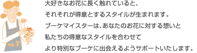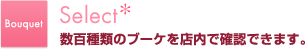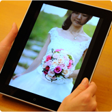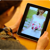 数百種類のブーケをiPadを使って店内で確認できます。実際のブーケをひとつひとつご覧頂けます。各ドレスタイプ別にブーケを見れたり、ドレスカラー別に閲覧することもできます。また、ブーケと合わせたヘッドパーツもご覧頂けます。