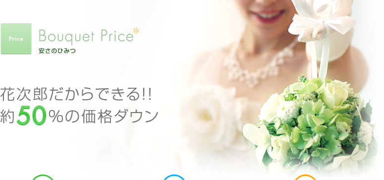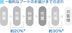 長年の花市場でのノウハウを活かしてブーケに最適なお花を見極めます。また、併設している店舗との連携で大量にお花を仕入れる事で、良質のお花をよりお求めやすい価格で販売する事ができます。