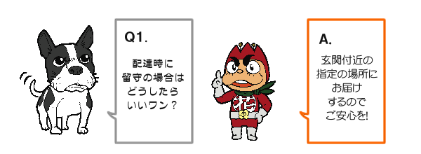 - ・このサービスは、不在票対応しておりません。ご不在の場合は玄関付近のご指定の場所に納品致します。