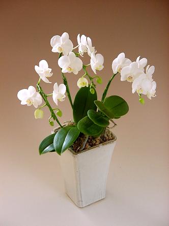 胡蝶蘭【白眉】はお花のよさを引き立てるためスタイリッシュな鉢に飾り、あえてラッピングはいたしません。