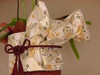 幾何学模様や絵模様を、金銀箔を紙にはって細く切った糸や多彩な絹糸を用いて織り出した