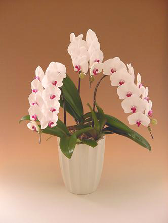 胡蝶蘭【吉祥】はお花のよさを引き立てるためスタイリッシュな鉢に飾り、あえてラッピングはいたしません。