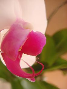 花びらの白と、リップの赤が見事な対比を醸し出している胡蝶蘭です。