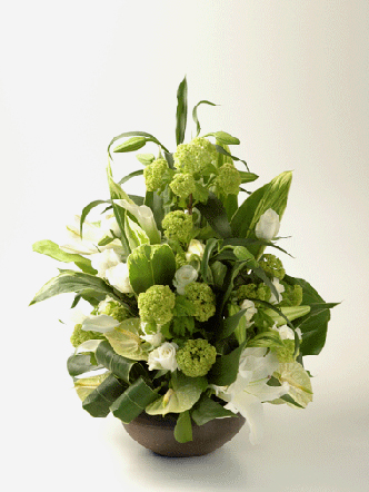 Flower/白いユリやグリーンを使って、爽やかに仕上げたアレンジメントです。
