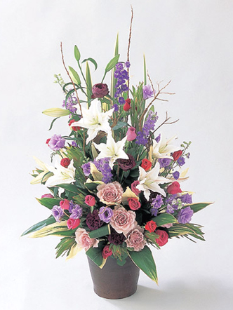 Flower/ユリやバラをたっぷり使い、紫色を基調とした華やかなアレンジメントです。